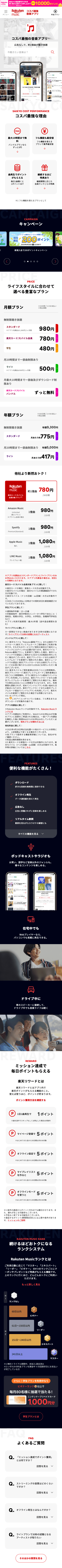 - 楽天経済圏でポイントを効率よく貯めたい方音楽を聴くだけで楽天ポイントが貯まり、楽天市場など他サービスでもお得に活用できます。